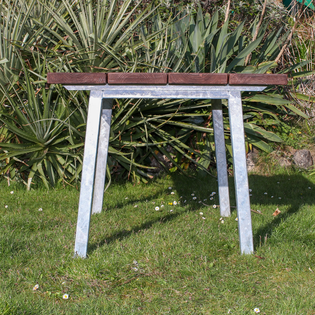 - Steel bases: fabricated in-house from heavy-gauge British steel. The legs are then hot-dip galvanised creating a durable, metallurgically bonded zinc-iron alloy coating.